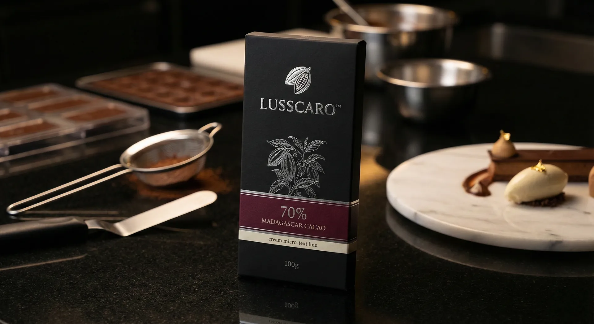 LUSSCARO™ is a premium chocolate brand built around single-origin cacao and European patisserie culture.