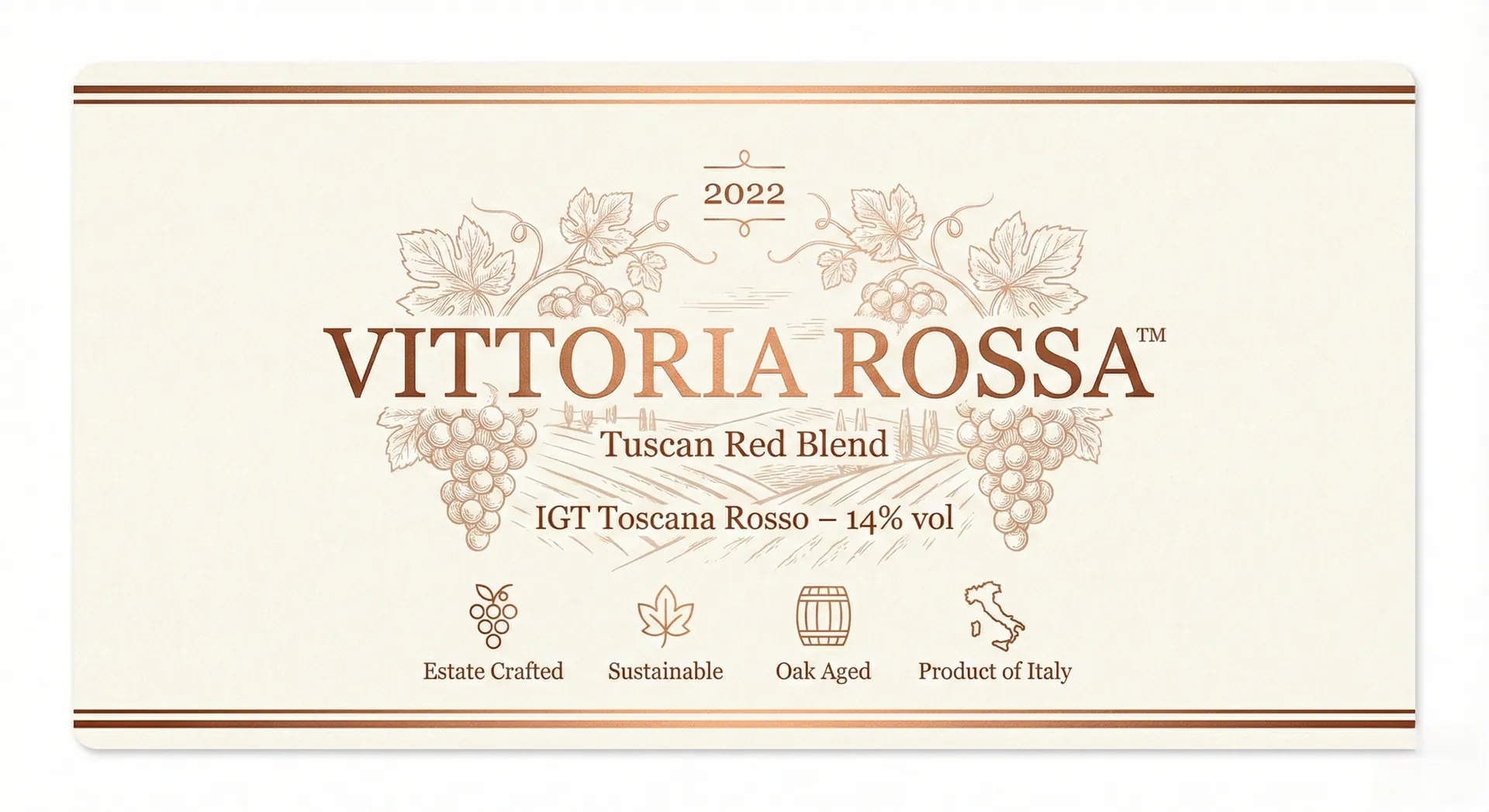 Vittoria Rossa™ is a refined Tuscan red blend crafted in the hills of Siena.